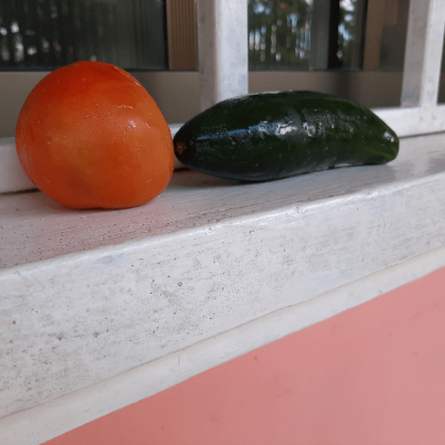 Une tomate et un concombre achetés à David au Panamá.